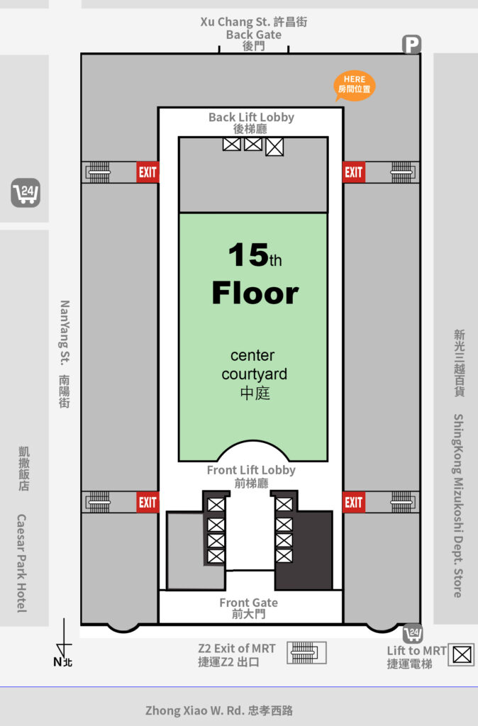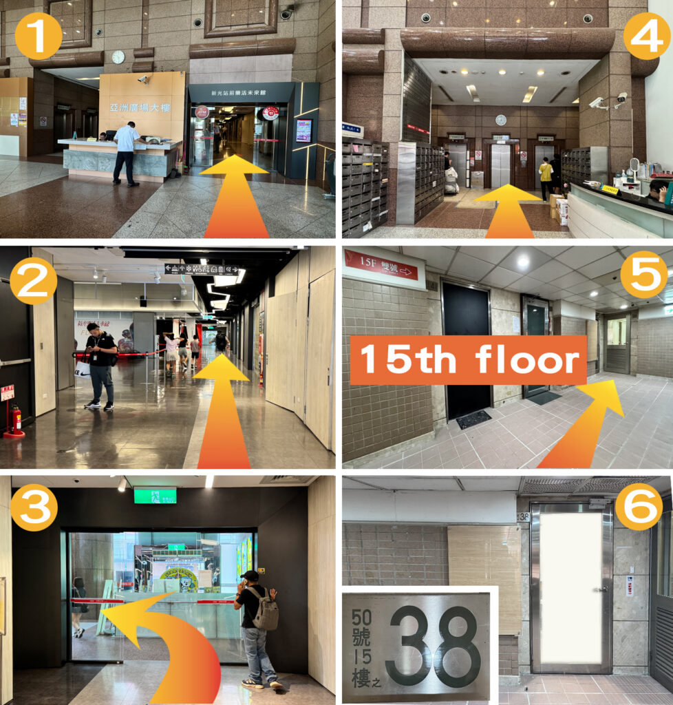 Taking the elevator on the left side of Z2 exit will lead you directly to the front of the Shin Kong Life Tower, and if you look to your left, you will be able to see our building.